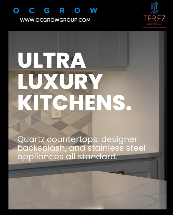 Ultra Modern Kitchens: Stainless steel appliances, quartz countertops, and high ceilings are all standard features.